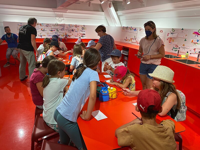 Im Anschluss an die hochinteressante Führung durften die Kinder in einem Workshop ihre Museumseindrücke auf Papier bringen, malen, basteln und schließlich mit nach Hause nehmen.