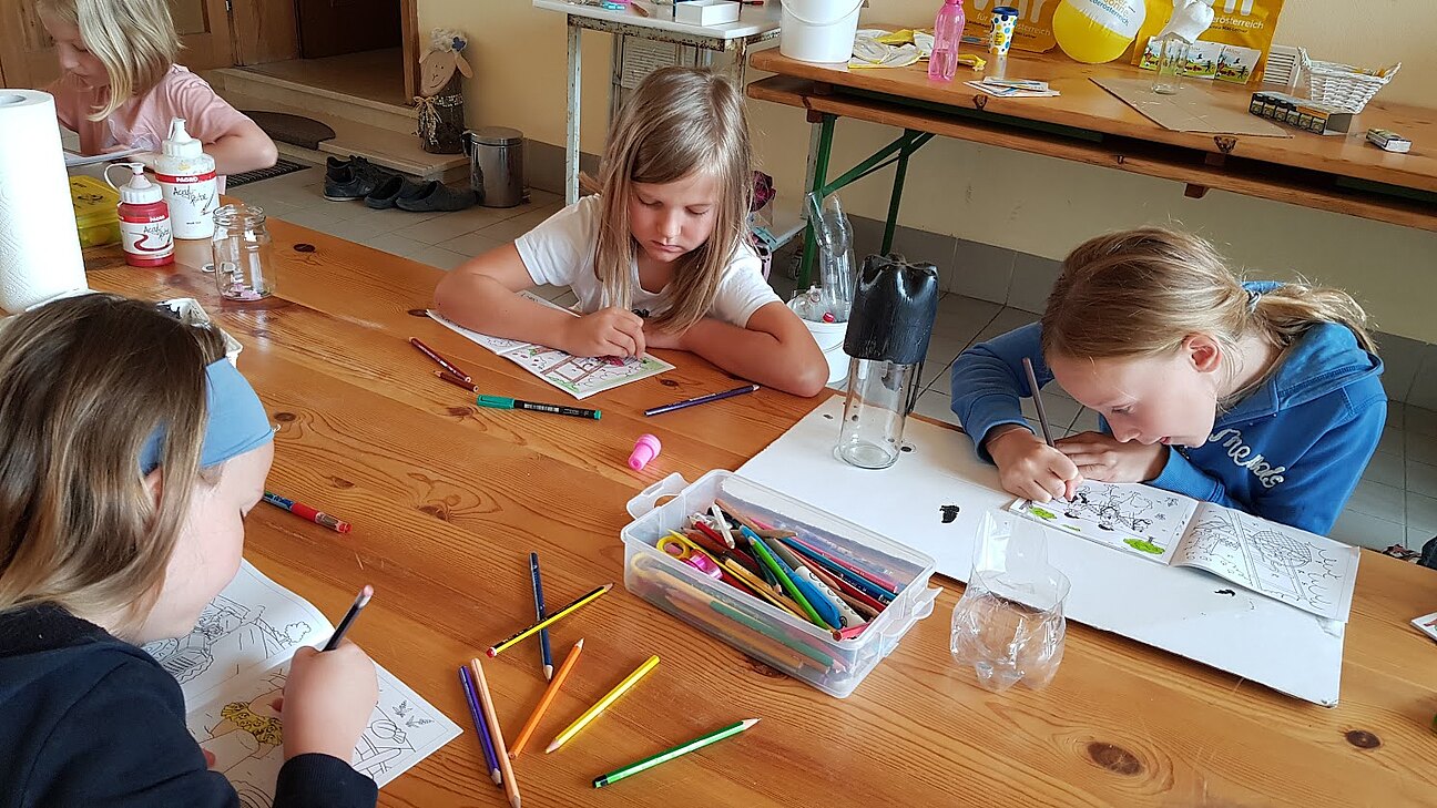 Bewaffnet mit einer sauberen PET-Flasche fanden sich die kreativen Mädels vor dem Tor der Schloßstraße 27 ein. Beim Vorzeichnen der ersten "Tiere", die in späterer Folge dann aus den Flaschen geschnitten wurden, war der Phantasie der Kinder keine Grenze gesetzt.