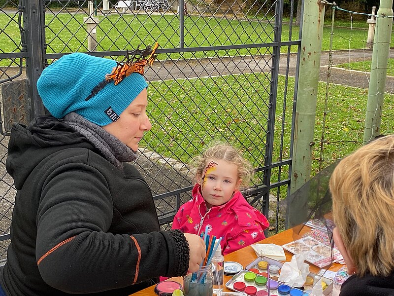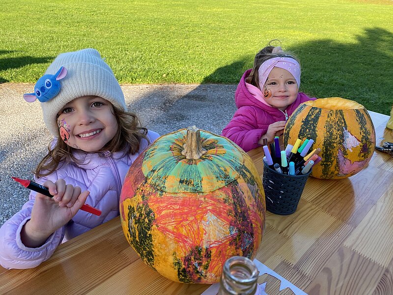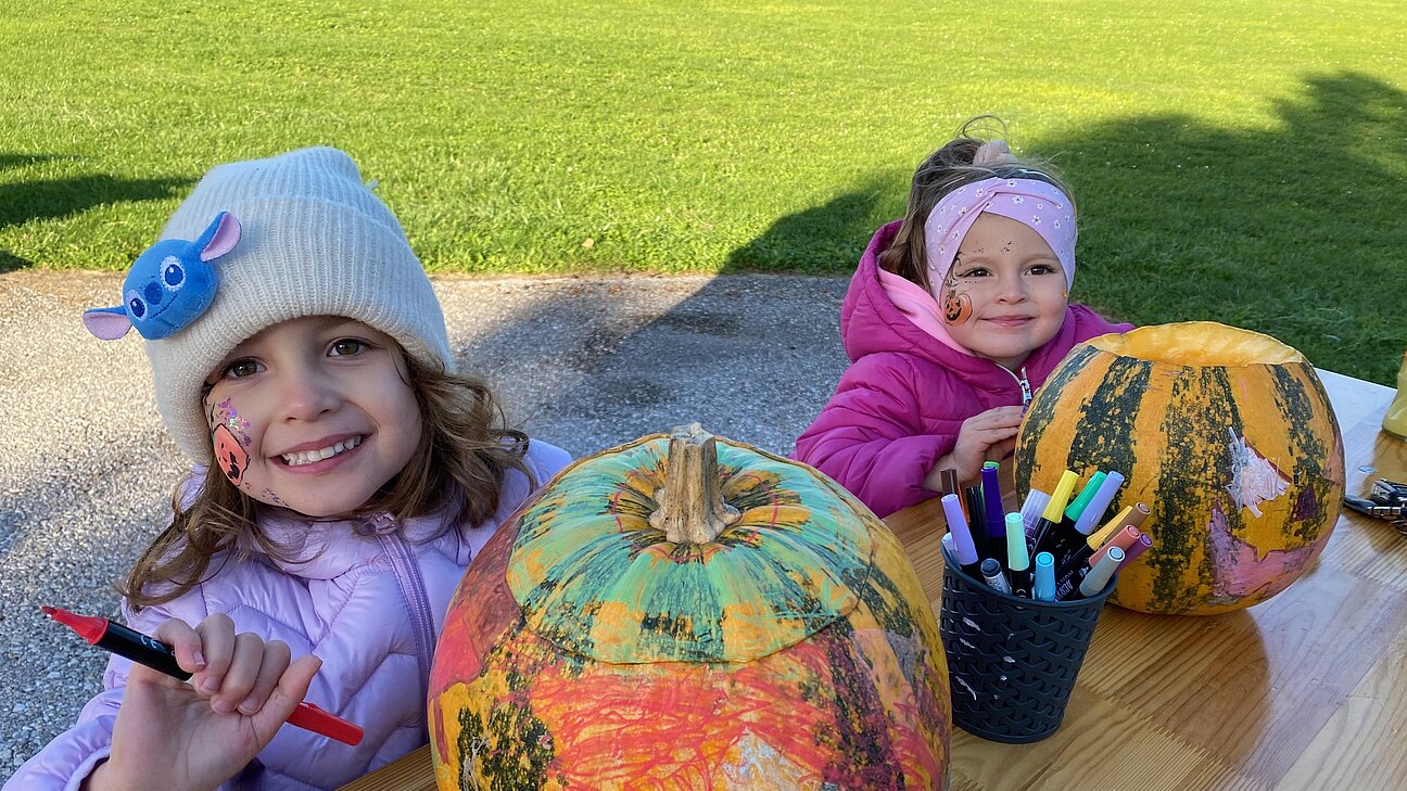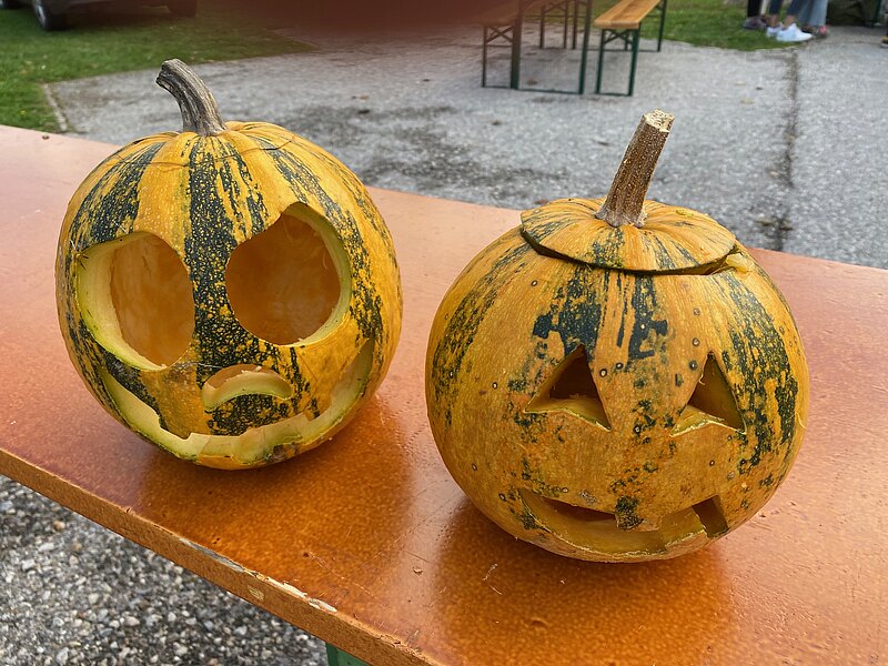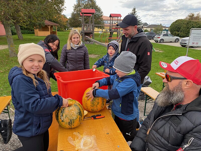 Danke vor allem an GR Katrin Weiss, die mit ihrer Schwester und Schwiegermutter dafür sorgte, dass die Kinder auch entsprechend gruselig geschminkt werden konnten und auch die vielen neuen Kürbisschnitzwerkzeuge wurden mit Begeisterung ausprobiert.