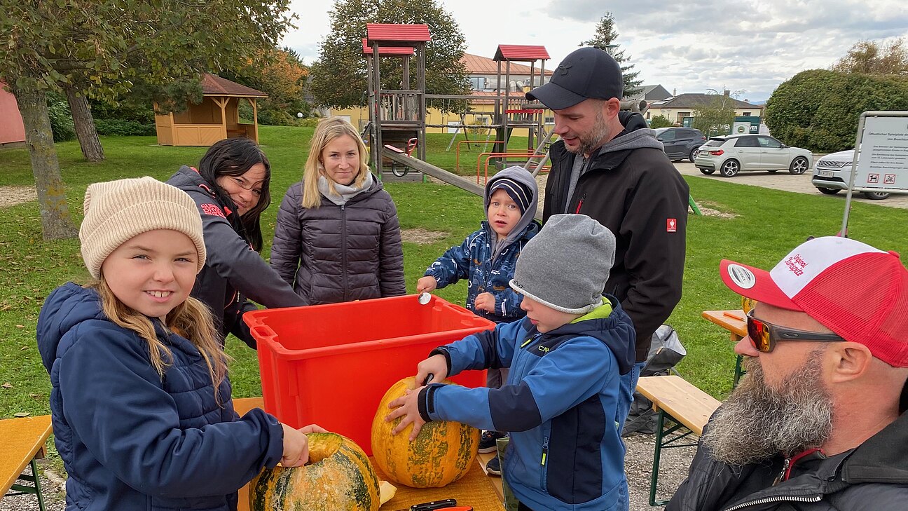 GPO Christine Besser bedankt sich auch bei den vielen Mehlspeisbäckerinnen und bei Gabi von der Militärsiedlung, die jedem Kind einen kleinen hübschen Kürbis als Geschenk gestrickt hat.
