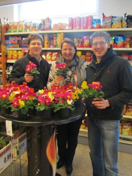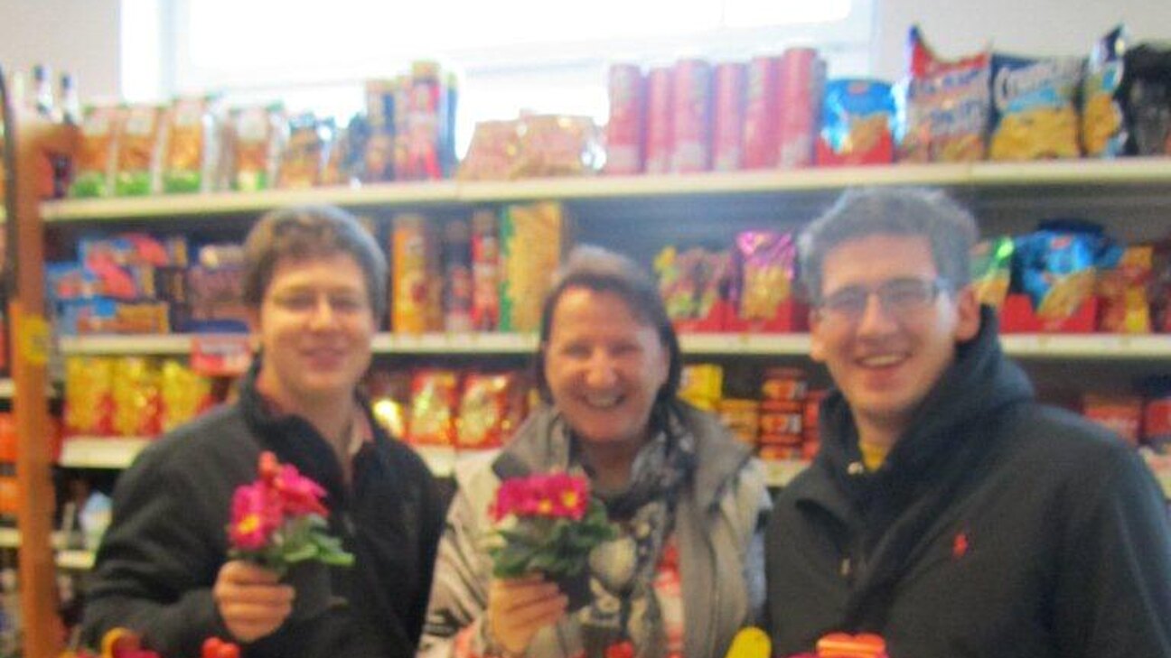 GfGR Christine Besser, unterstützt von Gerhard Maurer und Daniel Schneider, verteilte bunte Primerln an diverse Kunden und Mitarbeiter der Nahversorger Spar, der Trafik sowie an Angestellte verschiedener Firmen in Sommerein.